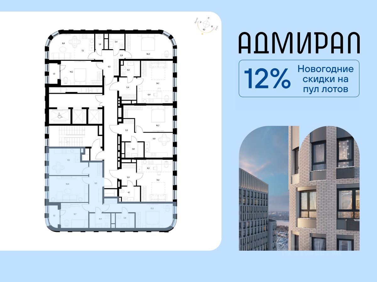 Квартира находится в корпусе жилого комплекса бизнес-класса "Адмирал", расположенного по адресу г. Москва, ул. Шоссейная, 4Д. (Застройщик - "Галс Девелопмент").