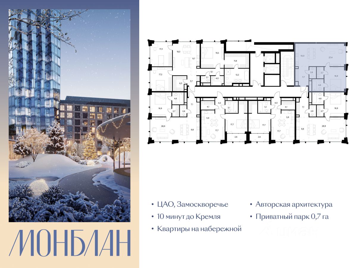 "Монблан" - элитный жилой комплекс в сердце Замоскворечья, в уникальном месте Москвы. Проект расположен в хорошо знакомом месте, напротив Дома музыки, прямо у воды.