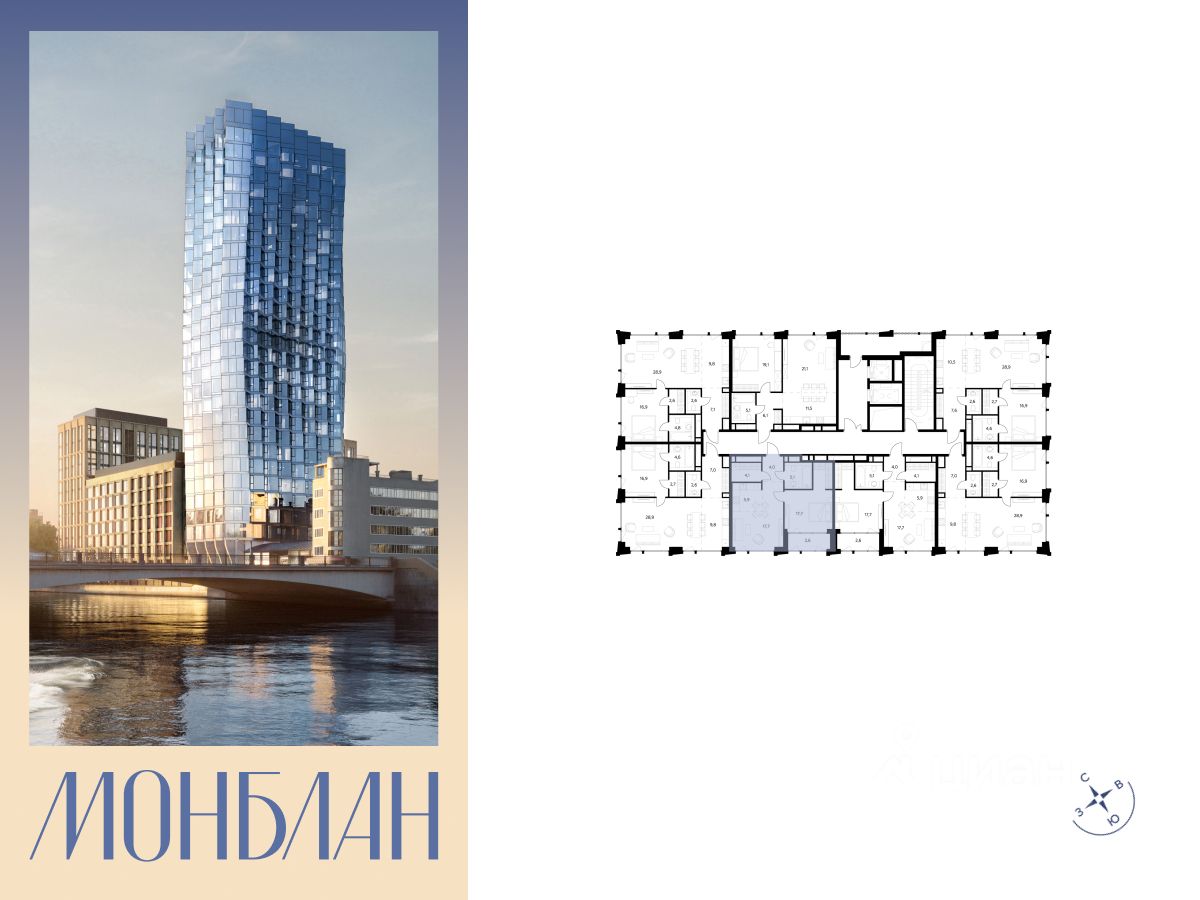 В элитном жилом комплексе "Монблан" на Шлюзовой набережной в Замоскворечье напрямую от девелопера ГК "Галс-Девелопмент" представлена 1-комнатная квартира квартира на 9 этаже общей площадью 57.10 м².