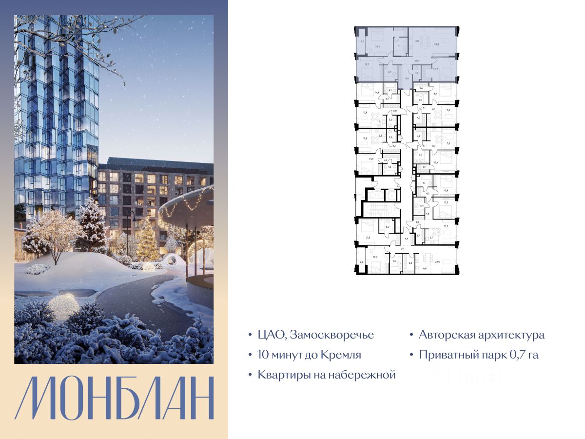 "Монблан" - элитный жилой комплекс в сердце Замоскворечья, в уникальном месте Москвы. Проект расположен в хорошо знакомом месте, напротив Дома музыки, прямо у воды.