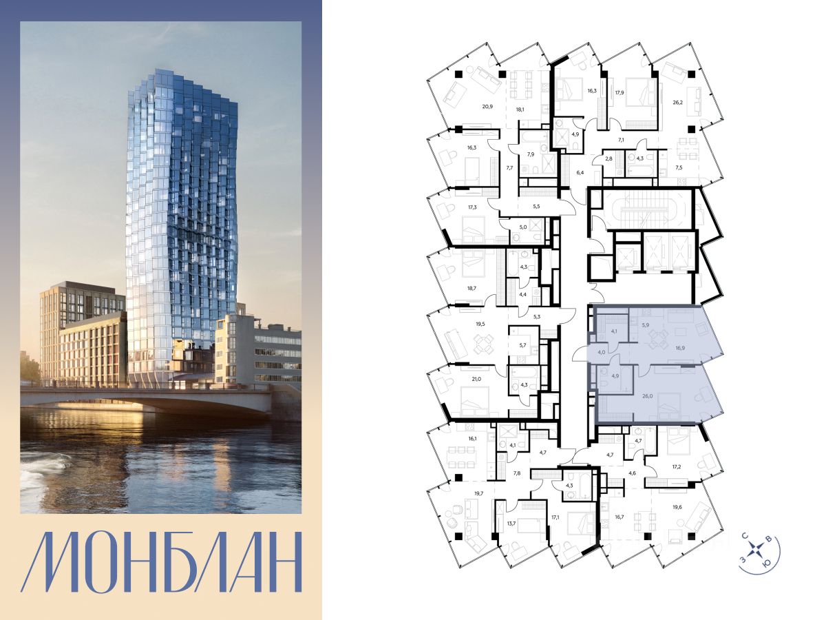 В элитном жилом комплексе "Монблан" на Шлюзовой набережной в Замоскворечье напрямую от девелопера ГК "Галс-Девелопмент" представлена 1-комнатная квартира квартира на 15 этаже общей площадью 61.80 м².
