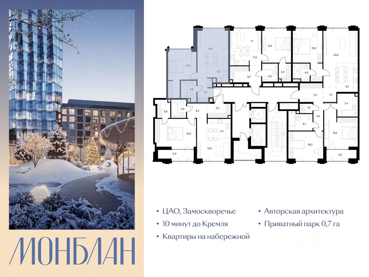 "Монблан" - элитный жилой комплекс в сердце Замоскворечья, в уникальном месте Москвы. Проект расположен в хорошо знакомом месте, напротив Дома музыки, прямо у воды.