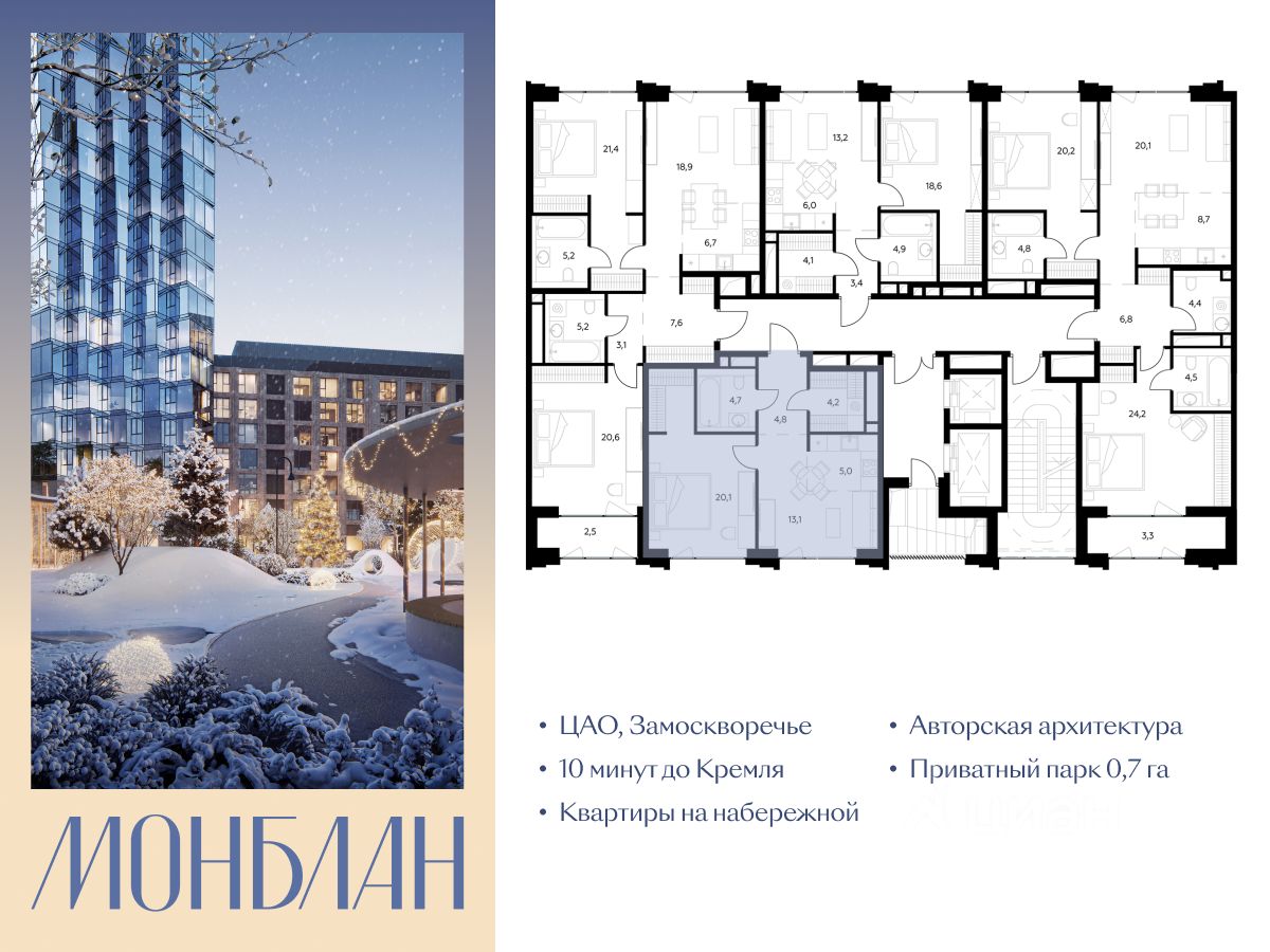 "Монблан" - элитный жилой комплекс в сердце Замоскворечья, в уникальном месте Москвы. Проект расположен в хорошо знакомом месте, напротив Дома музыки, прямо у воды.