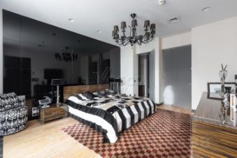 Интерьер квартиры выполнен в современном стиле с применением качественных дорогостоящих материалов.
