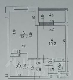 Комната (13,22 кв.м) и кухня (10,2 кв.м) правильных форм,