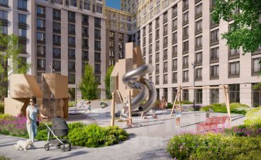 На благоустроенной терриории жк спроектированы прогулочные и фитнес зоны, игровые площадки из природных материалов для детей всех возрастов. А сердцем игрового пространства станет многоуровневый детский комплекс с закрытой горкой.