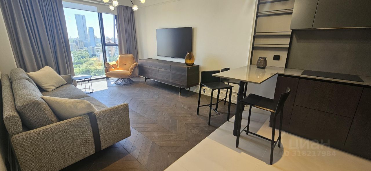 В этом уникальном Апарт-Комплексе продаётся светлый, уютный апартамент в формате Евро-двухкомнатная квартира(кухня-гостиная, спальня, гардеробная) с прекрасным видом на Москву, в варианте "ЗАЕЗЖАЙ И ЖИВИ". Вся необходимая Новая мебель из Италии, весь необходимый набор Новой премильной бытовой техники: встроенный холодильник, духовой шкаф, микроволновая печь, посудомойка, плита, вытяжка.