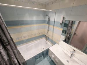 Современная кухня со встроенной техникой Bosch, просторная гостиная, 2 изолированные спальни, кабинет, гардеробная, постирочная, 2 санузла. Комнаты оснащены кондиционерами. В квартире выполнен качественный ремонт: грамотно разведены электрика и сантехника, стены под покраску (можно легко заменить на любой любимый цвет).