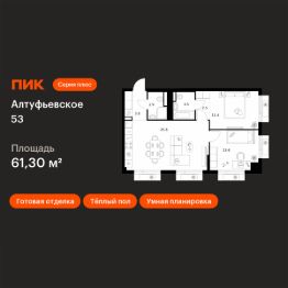 Продаётся 2-комн. квартира площадью 61,3 кв.м на 16 этаже 22 этажного дома (Корпус 1.1, Секция 1) проекта ПИК Алтуфьевское 53. Светлый просторный подъезд на уровне земли, функциональная планировка, большие окна, c отделкой.