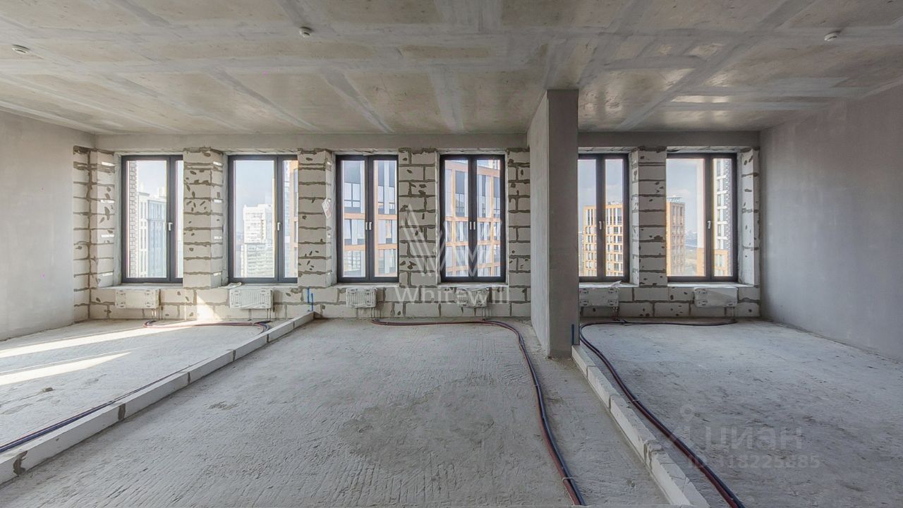 Квартира без отделки расположена на 18-м этаже. Возможно спланировать кухню-гостиную, мастер-спальню со своим санузлом, вторую спальню, гостевой санузел и холл. Благодаря панорамному остеклению и девяти окнам пространство наполнено светом и теплом, открываются виды на благоустроенную территорию комплекса.