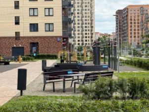 Развитая инфраструктура (Одна из лучших школ г.Москвы (ТОП 10), детский сад, спортивные и игровые площадки, магазины, аптеки, кафе, пункты выдачи заказов). Во дворе много парковочных мест.