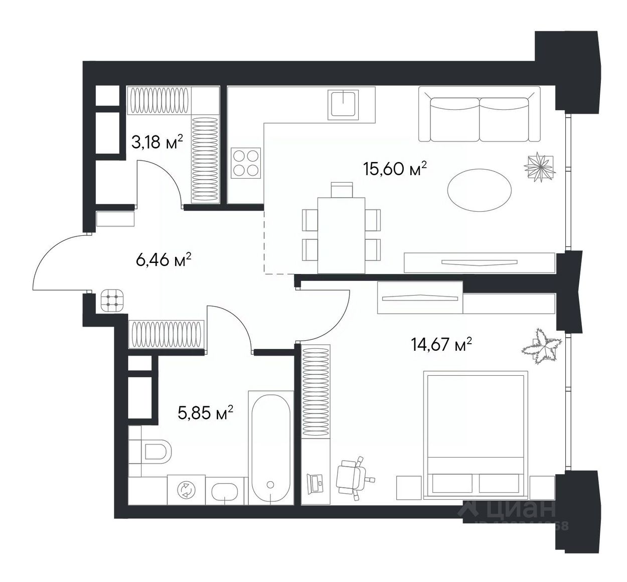 Продаётся просторная 1-комнатная квартира площадью 45,76 м², расположенная на 23 этаже корпуса 1.2 — идеальный выбор для тех, кто ценит эстетику высоты, панорамы города и современный премиум-класс.
