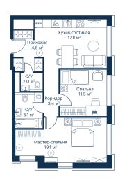 * Евротрешка 64 м², 21 этаж, угловая. Панорамные окна, вид во двор.