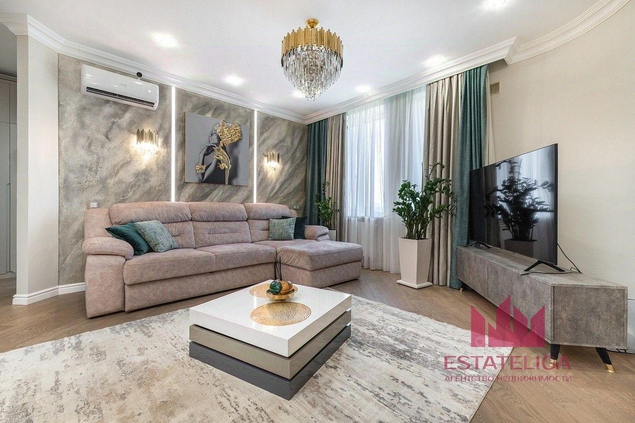 Квартира выполнена в дорогом и качественном ремонте, который сочетает в себе современные дизайнерские решения и функциональность. Просторная кухня-гостиная является центром квартиры, идеально подходящей как для семейных вечеров, так и для приема гостей. Большие окна наполняют пространство светом и создают ощущение простора.