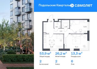 Предлагается 2-комнатная квартира комфорт-класса 53,88 кв.м в корпусе 2 на 6 этаже, в ЖК "Подольские Кварталы"