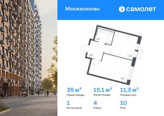 Предлагается 1-комнатная квартира комфорт-класса 34,97 кв.м в корпусе 4 на 10 этаже, в ЖК "Молжаниново"