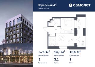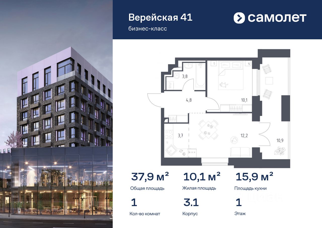 Предлагается 1-комнатная квартира бизнес-класса 37,9 кв.м в корпусе 3.1 на 1 этаже, в "Верейская 41"