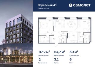 Предлагается 2-комнатная квартира бизнес-класса 87,21 кв.м в корпусе 3.1 на 6 этаже, в "Верейская 41"