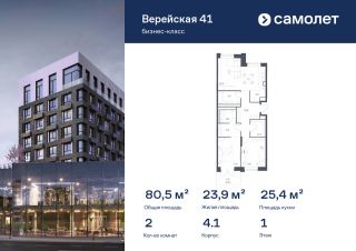 Предлагается 2-комнатная квартира бизнес-класса 80,48 кв.м в корпусе 4.1 на 1 этаже, в "Верейская 41"