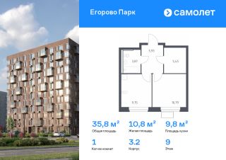 Строим кварталы для жизни с заботой о будущем. Предлагается 1-комнатная квартира комфорт-класса 35,79 кв.м в корпусе 3.2 на 9 этаже, в ЖК "Егорово Парк"