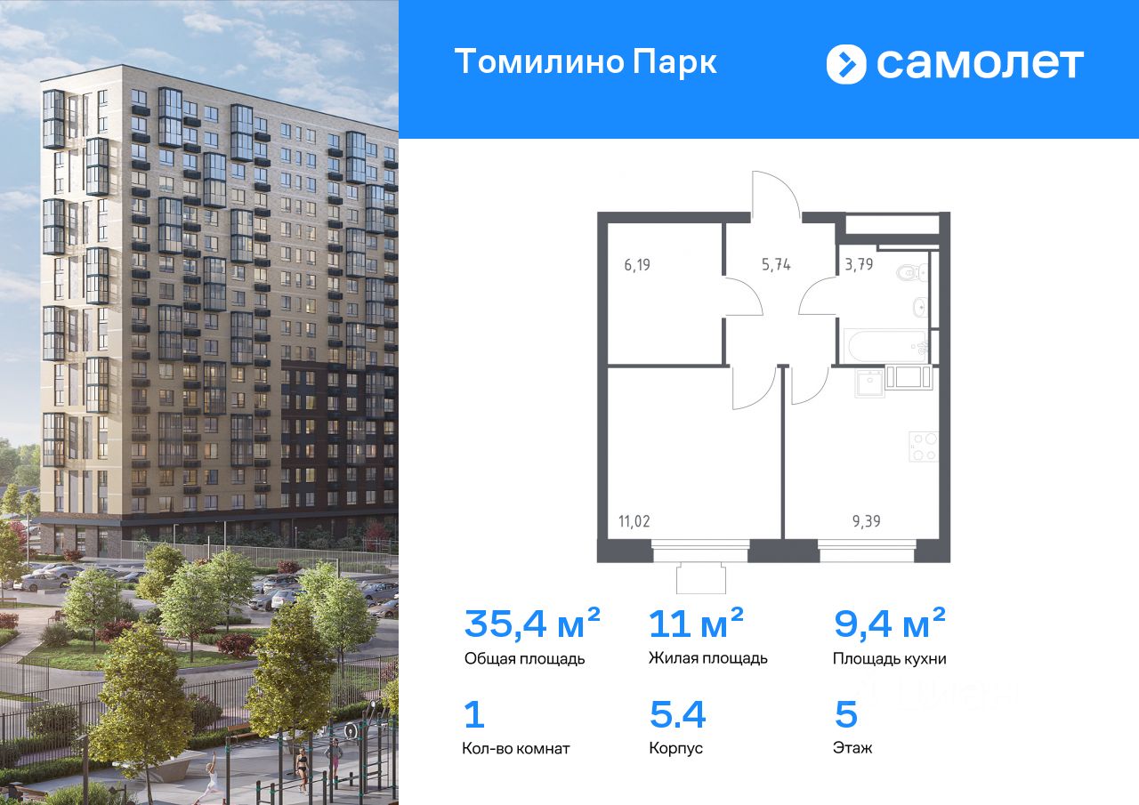 Строим кварталы для жизни с заботой о будущем. Предлагается 1-комнатная квартира комфорт-класса 35,4 кв.м в корпусе 5.4 на 5 этаже, в ЖК "Томилино Парк"