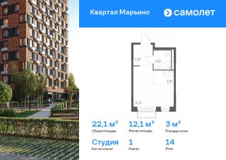 Предлагается квартира студия комфорт-класса 22,07 кв.м в корпусе 1 на 14 этаже, в ЖК "Квартал Марьино"