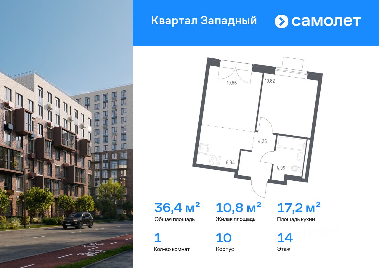Предлагается 1-комнатная квартира комфорт-класса 36,36 кв.м в корпусе 10 на 14 этаже, в ЖК "Квартал Западный"
