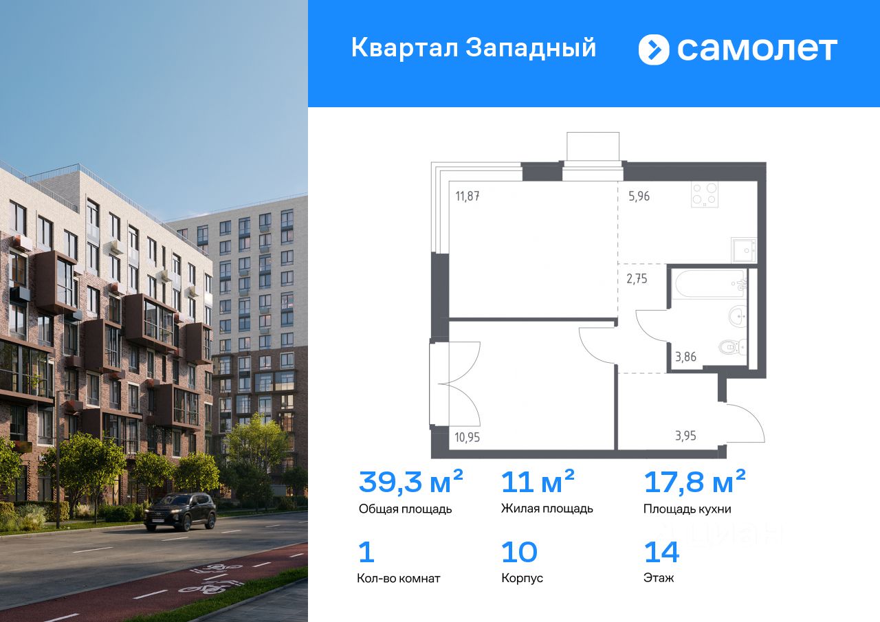 Предлагается 1-комнатная квартира комфорт-класса 39,34 кв.м в корпусе 10 на 14 этаже, в ЖК "Квартал Западный"