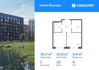 Предлагается 1-комнатная квартира комфорт-класса 36,38 кв.м в корпусе 23 на 8 этаже, в ЖК "Новое Внуково"