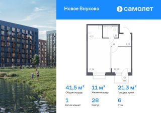 Предлагается 1-комнатная квартира комфорт-класса 41,47 кв.м в корпусе 28 на 6 этаже, в ЖК "Новое Внуково"