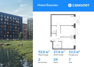 Предлагается 2-комнатная квартира комфорт-класса 52,64 кв.м в корпусе 28 на 7 этаже, в ЖК "Новое Внуково"