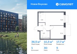 Предлагается 1-комнатная квартира комфорт-класса 36,46 кв.м в корпусе 30 на 5 этаже, в ЖК "Новое Внуково"