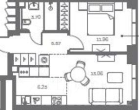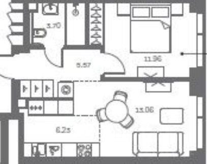 Продается по уступке квартира евро-формата (кухня-гостиная и спальня) в башне А!