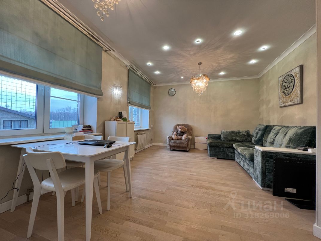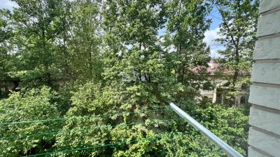 Квартира расположена на четвёртом этаже четырёхэтажного дома. На этаже одна квартира, соседей нет. Окна кухни и гостиной комнаты выходят на улицу, окна из спальных комнат и санузла выходят во внутренний, зелёный, тихий двор.
