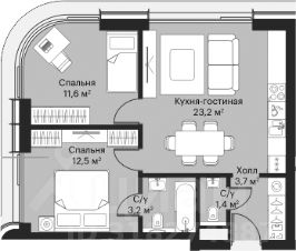 Общая площадь 55,5 кв м