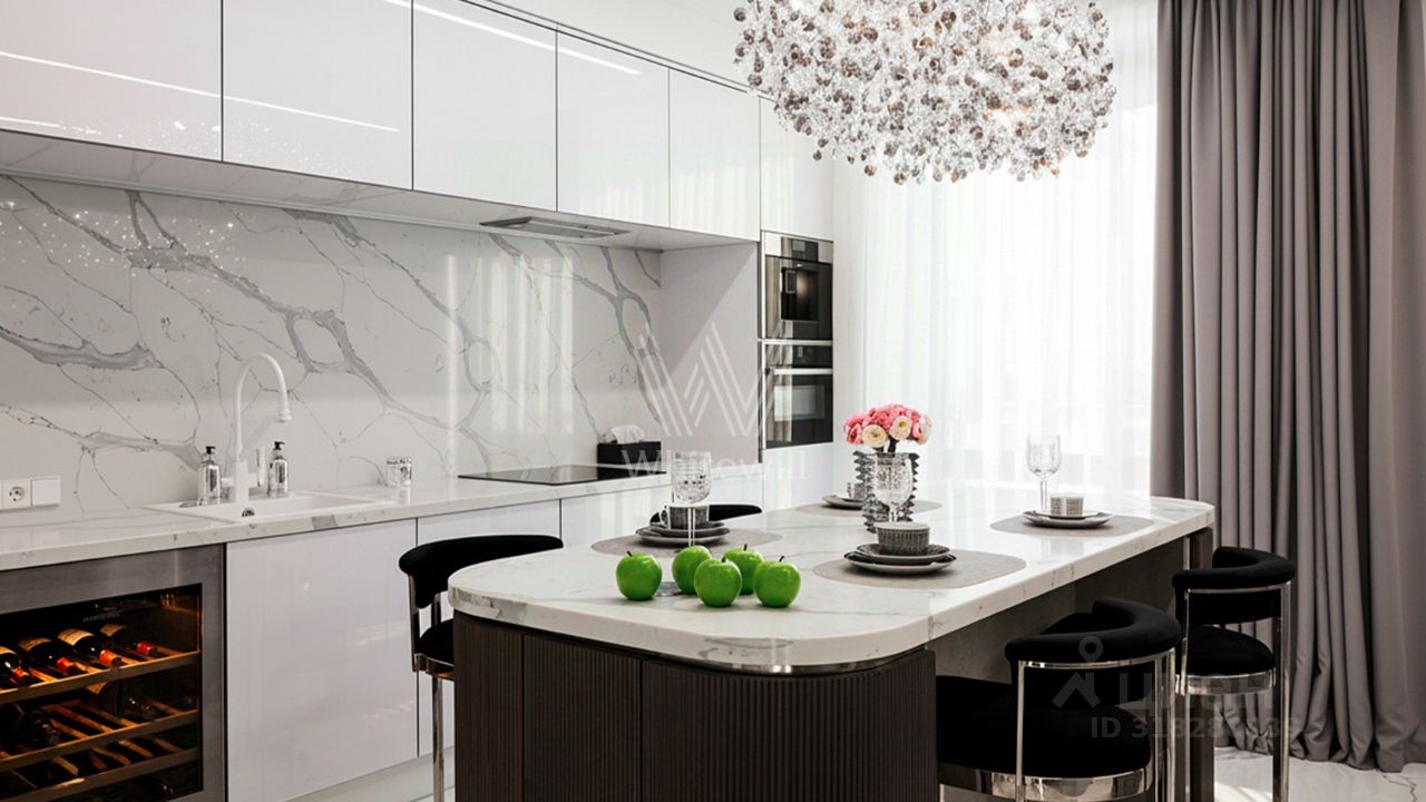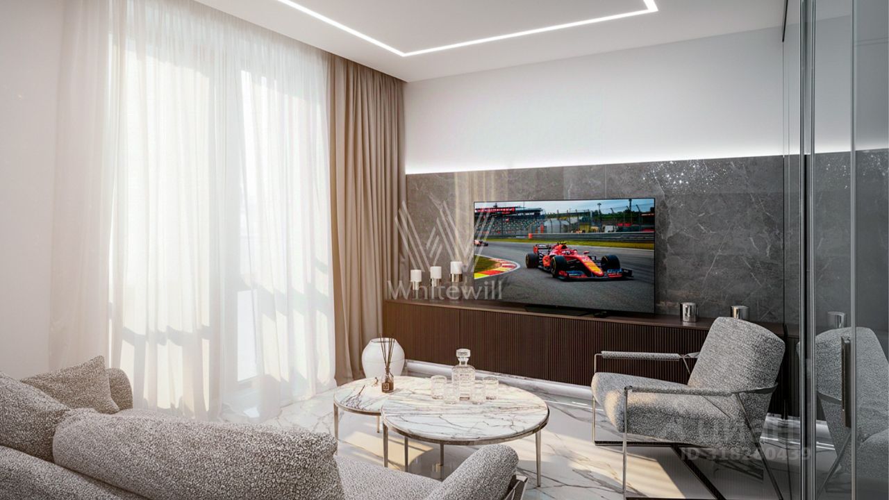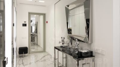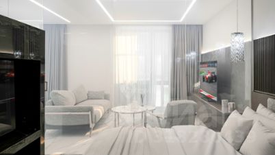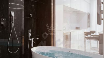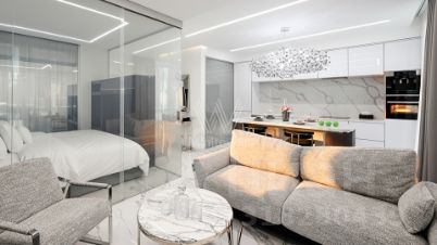 Квартира с одной спальней общей площадью 57 м² в премиальном доме NV9. Квартира расположена на втором этаже, выполнена дизайнерская отделка премиум-класса, выложена плитка итальянского производства, установлены умные стеклянные перегородки smart стекло. Интерьеры наполнены мебелью Esttica Vizion и Ralph Lauren, кухня, шкаф и гардеробная от бренда Zetta, техника Neff и Miele. Планировка: просторная кухня-гостиная с двумя окнами, спальня, ванная комната, прихожая. Благодаря панорамным окнам пространство наполнено светом.