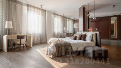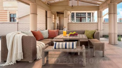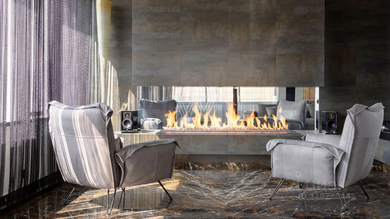 Верхний этаж пентхауса остеклён с трёх сторон, пространство наполнено естественным светом. В гостиной обустроена зона отдыха с бездымным биокамином и креслами Cloudspace Diesel by Moroso. На уютной круговой террасе обустроено пространство для отдыха, зона барбекю, открываются живописные виды на городской пейзаж Арбата. Можно приобрести три машино-места в подземном паркинге за отдельную стоимость.