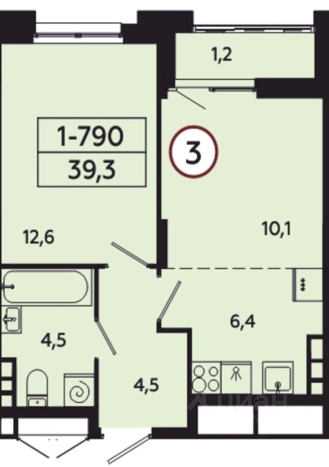 39.3 м² - идеальная площадь для воплощения ваших дизайнерских идей!