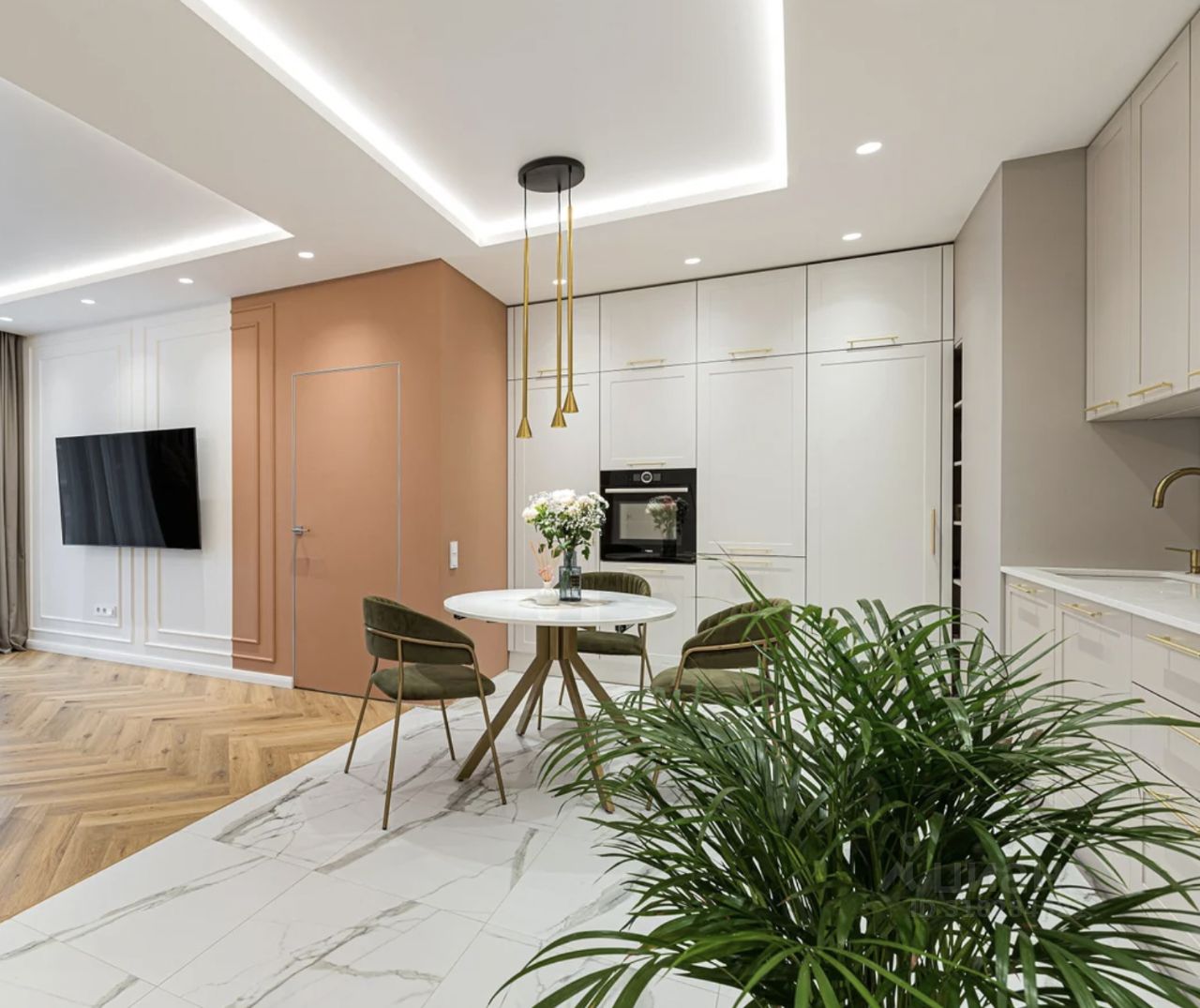 На первом этаже устроят двухуровневое лобби с лаунж-зоной, дизайнерской мебелью и стойкой ресешн. В каждом подъезде постаматы и колясочные. Для жителей предусмотрен подземный паркинг с системой для мойки колес. Интерьеры общественных зон разработаны в архитектурным бюро HAAST.