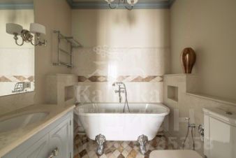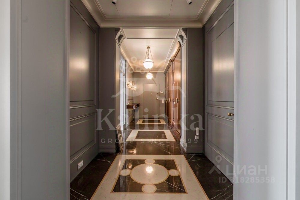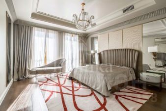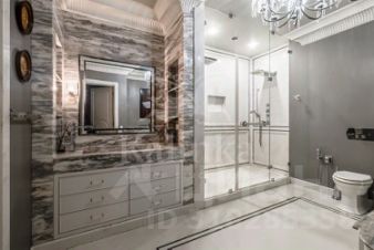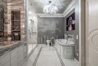 Квартира продается со встроенной мебелью. В отделке использованы мрамор, натуральное дерево, тканевые обои, столярные изделия по индивидуальному заказу.
