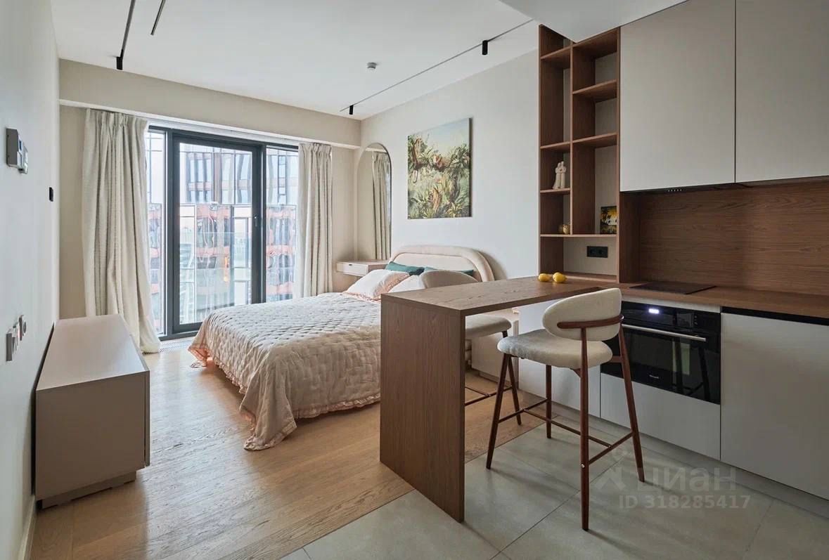 Студию площадью 27,2 кв.м. с отделкой MR на 31-м этаже. Квартира, располагается в корпусе Сильвер.
