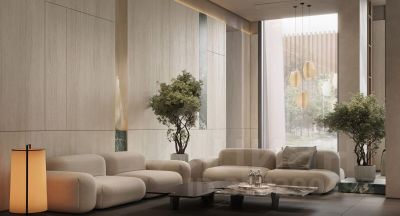 • дизайнерские лобби от бюро ABOVE ARCHITECTURE с панорамными окнами, интерьерами в теплой цветовой гамме и мягкой зоной ожидания располагаются в каждой башне;