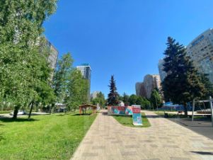 Особого внимания заслуживает огороженная и охраняемая территория, очень просторный двор с прогулочными зонами и местами для развлечения детей и взрослых. В строящихся домах застройщики используют минимум земли в настоящее время. Подобная по площади придомовая территория редка.