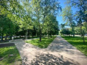 С обратной стороны дома бульвар генерала Карбышева - альтернативная прогулочная зона: пешеходные дорожки, скамейки, голуби, детские площадки, фонтан, новогодняя ёлка и праздничные мероприятия от Сергея Семёновича С. на регулярной основе.