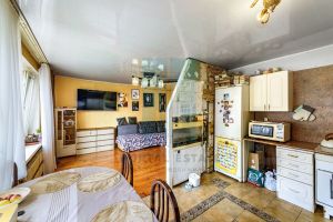 Планировка 3-комнатной квартиры позволяет комфортно разместиться большой семье: в каждой изолированной спальне будет достаточно места, как для личного пространства, так и для занятий творчеством или обучения детей. Здесь есть 2 застекленных лоджии, совмещенный санузел. Уютная кухня 8,2м2 совмещенная с гостиной(спальней) 17.5м2. Итого кухня получается 25м2! Спальни: 11.7+13.7+17.5м2. Перепланировки нет.