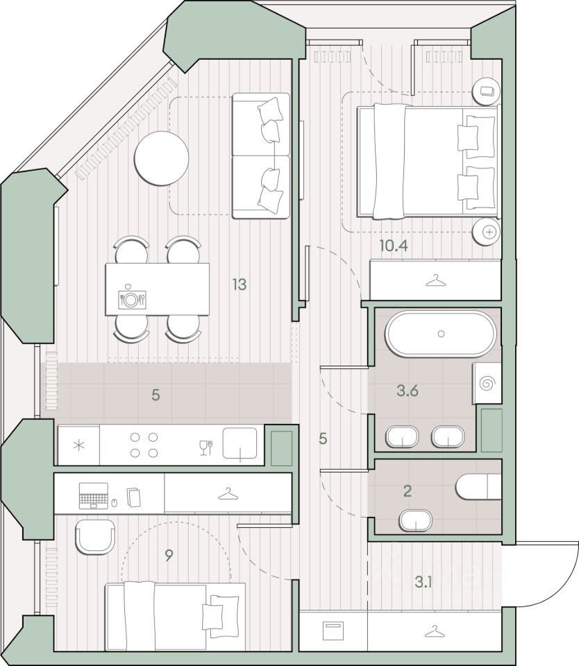 Продаётся 2-комнатная квартира общей площадью 51.1 кв.м. без отделки. Квартира расположена на 9 этаже корпуса 5.6 в жилом комплексе бизнес-класса "Среда на Лобачевского" в пешей доступности от метро "Аминьевская".