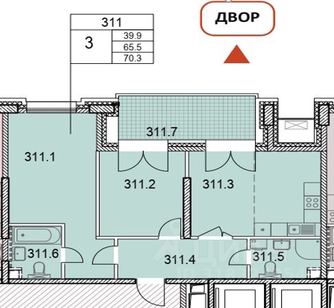 Окна выходят в закрытый двор без машин, что обеспечивает тишину и уединение,а также возможность наблюдать за детками на площадке.