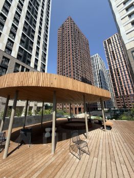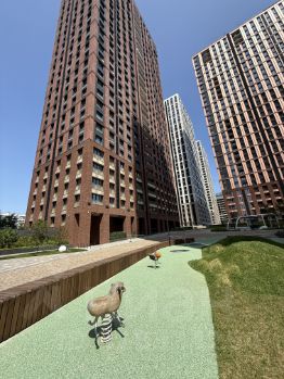 Видовая квартира в зеленом оазисе с закрытым уединенным двором без машин, где не только детские площадки, отвечающие современным стандартам, но и оборудованная спортивная площадка, множество специально оборудованных зон для работы и релакса. Двор имеет прекрасное озеленение.
