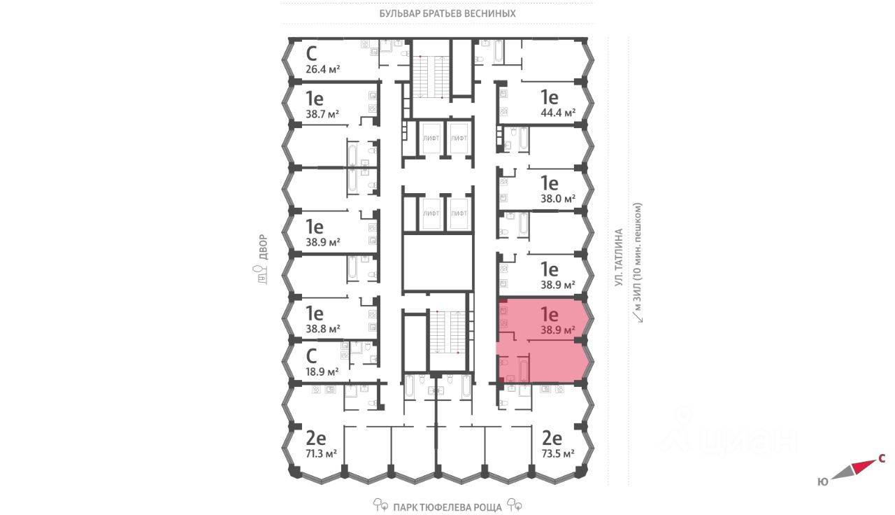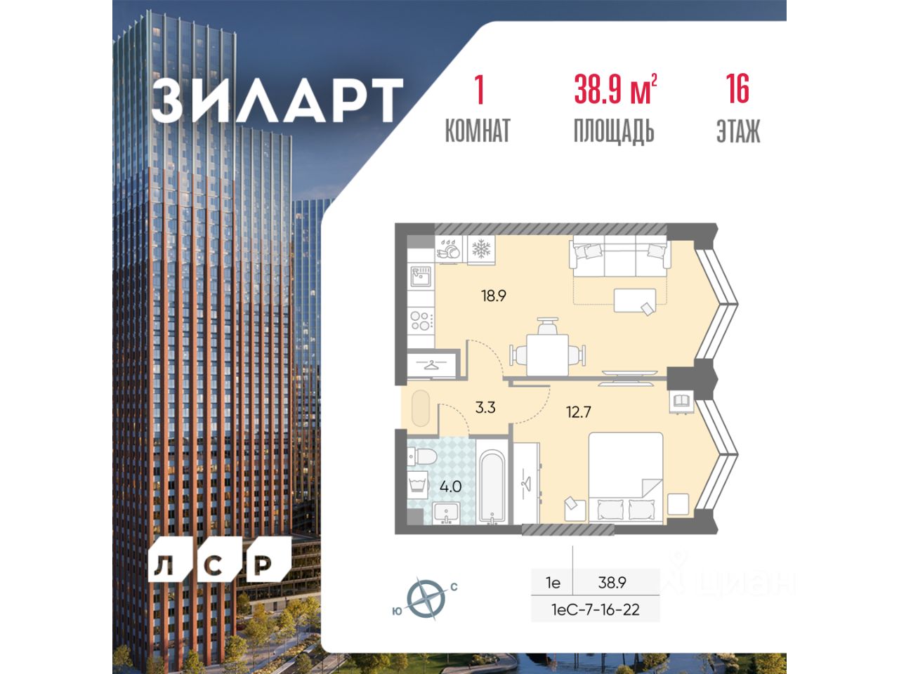 Продаётся 1-комнатная квартира в доме ЗИЛАРТ СПАРК общей площадью 38.9 кв. метров на 16 этаже.