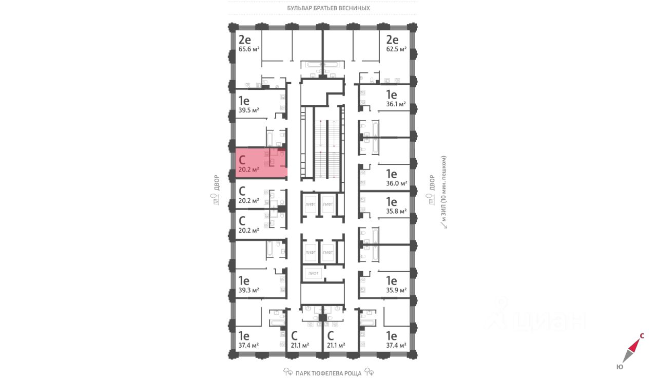 Продаётся квартира-студия в доме ЗИЛАРТ СПАРК общей площадью 20.2 кв. метров на 30 этаже.
